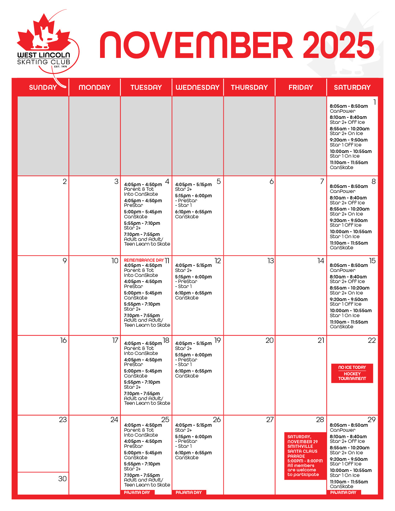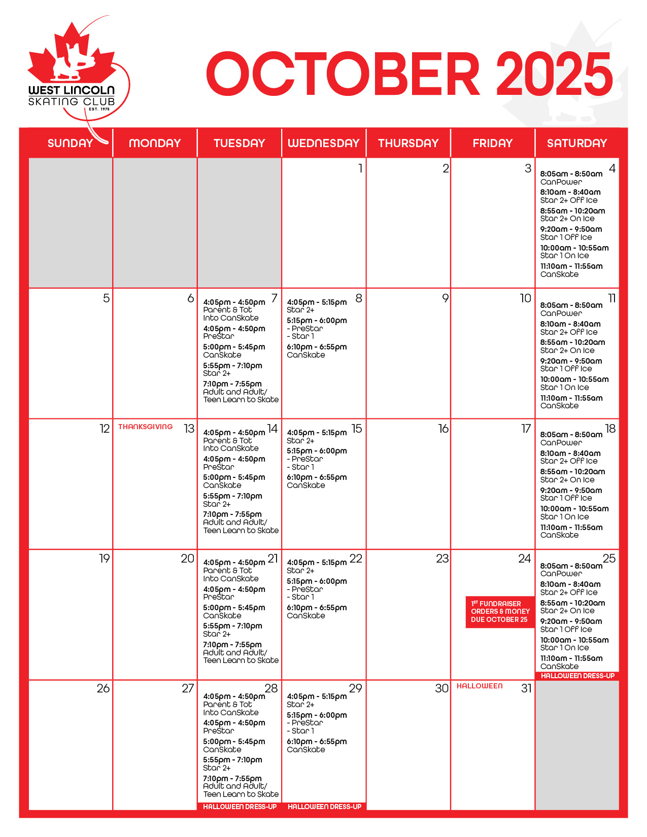 Keep up to date with all West Lincoln Skating Club events by checking our Monthly Calendar!