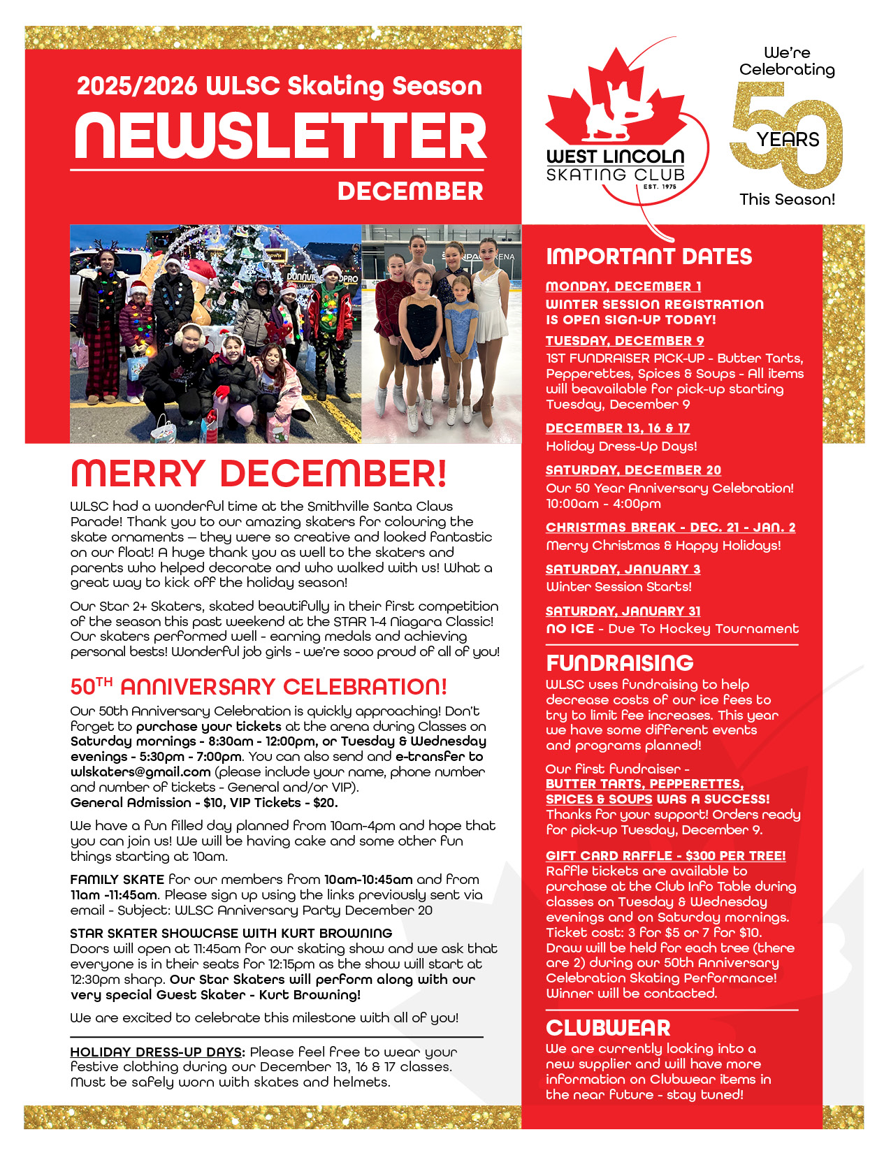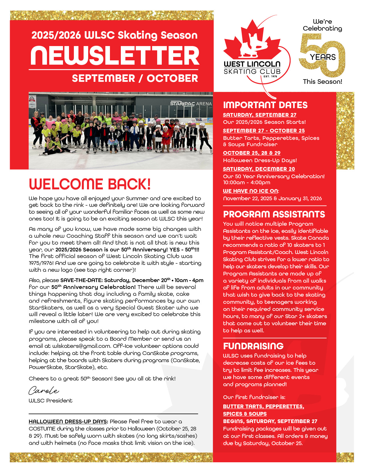 Keep up to date with all West Lincoln Skating Club news and events by reading our Monthly Newsletter!